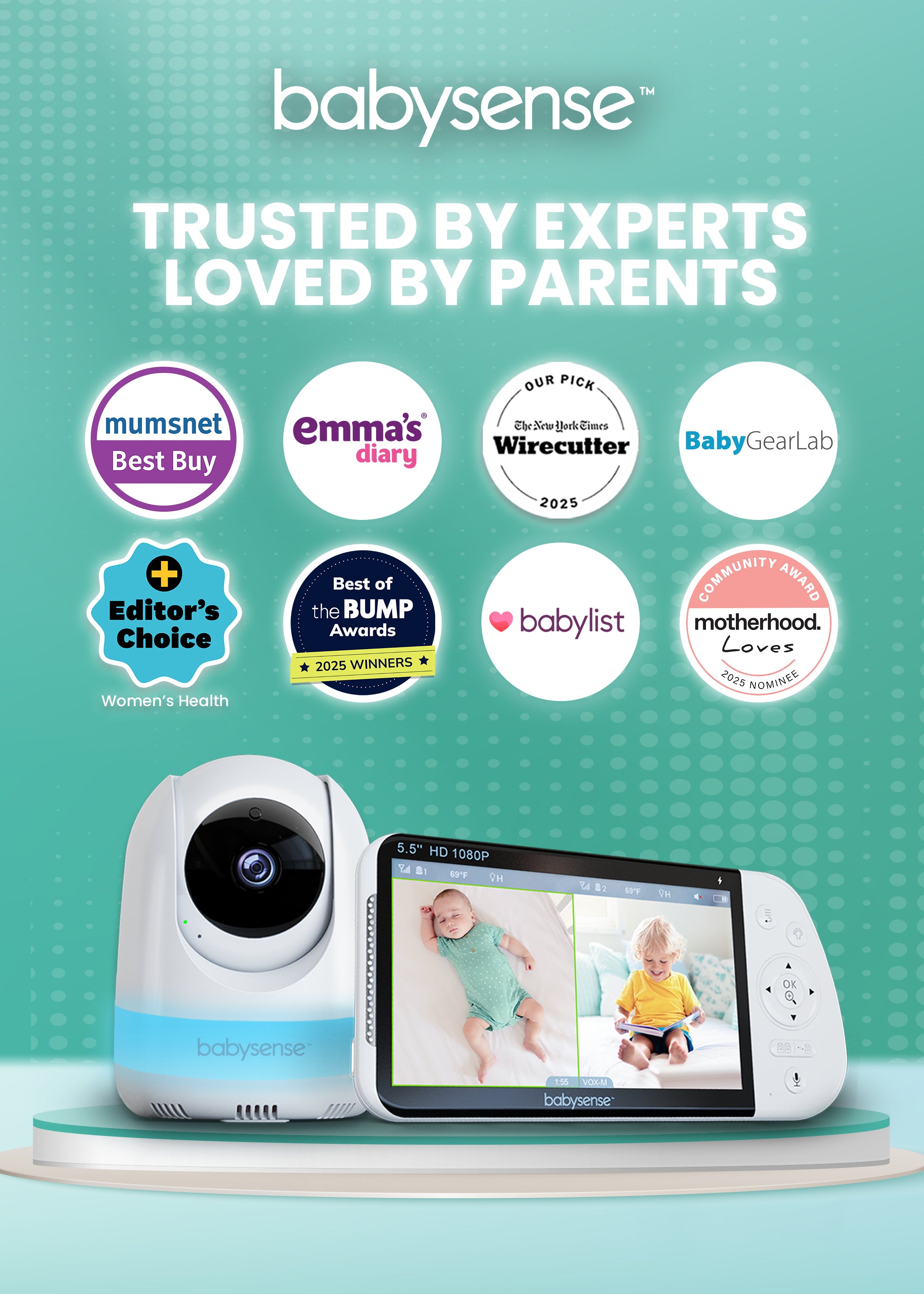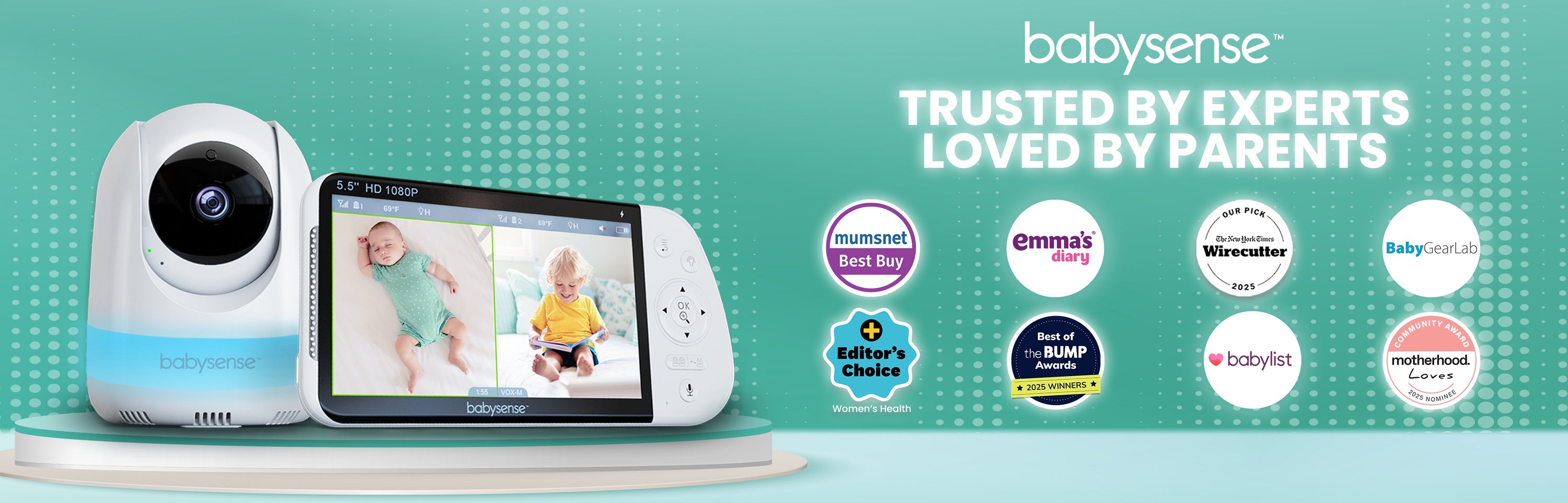 Thanks to its great quality, high definition video display and ability to connect to up to four cameras, we've chosen the Babysense 5.5” 1080p Full HD Split-Screen Baby Monitor to top our best baby monitors list.